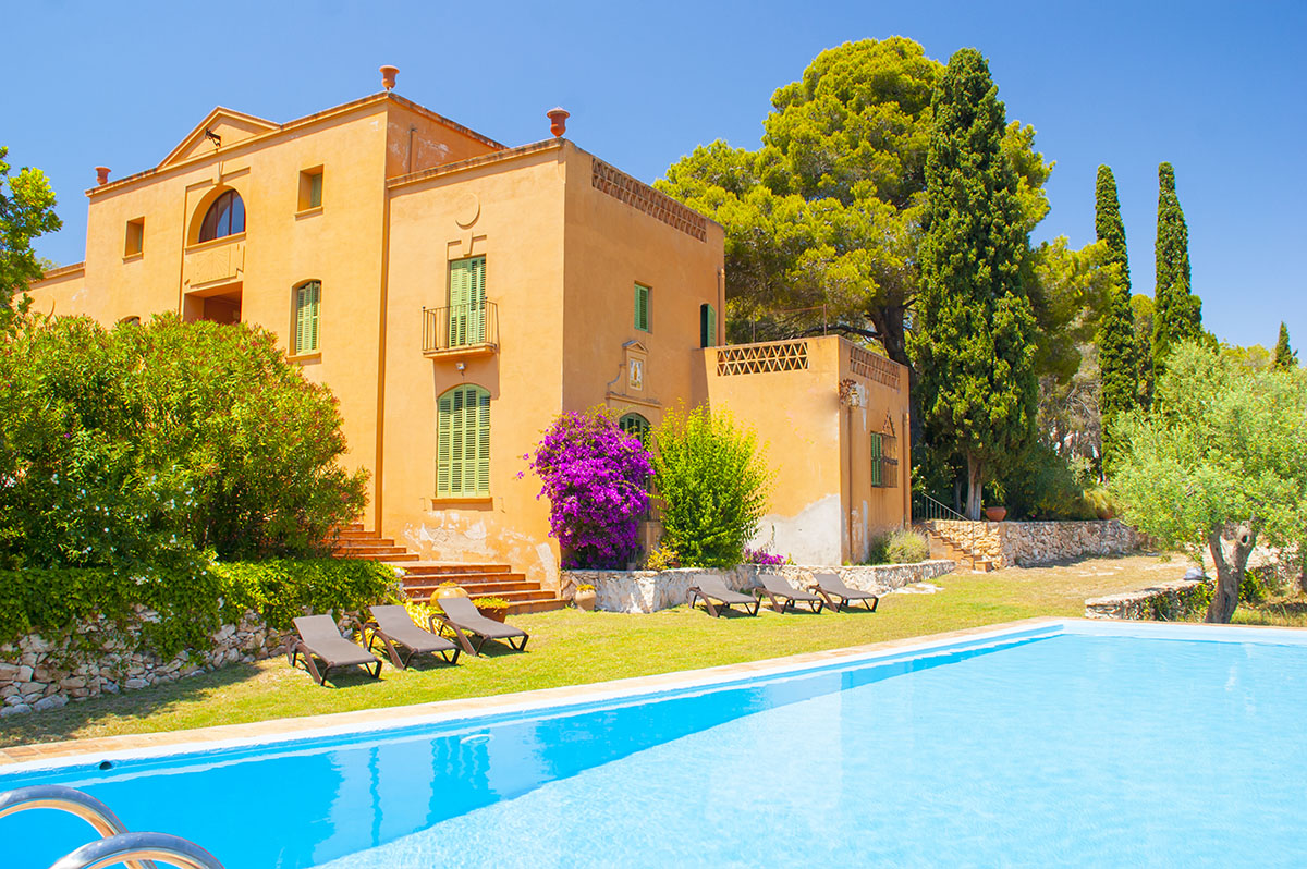 Belle villa espagnole pour 12 personnes avec piscine privée, garage, terrain de tennis et un jardin paysager.
