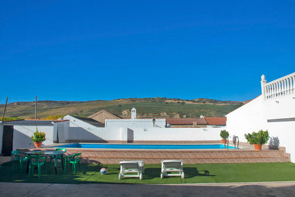 Cacin à 42 km de Granada: Maison "Rural Cacin". En bordure de la localité, à 400 m du centre de Cacín. A usage privé: terrain 300 m2, jardin avec pelouse 50 m2, piscine (5 x 10 m, profondeur 140 - 170 cm, disponibilité saisonnière: 01.Mai. - 30.Sep.). Douche extérieure, tennis, basket, volley ball, badminton, garage individuel. Borne de recharge électrique. Magasins 150 m, restaurant 300 m, arrêt de bus 200 m. Attractions à proximité: Parque Natural de la Sierra Tejeda 25 km. Région de randonnées: Tajos del rio Cacín 4 km. Veuillez noter: sans ascenseur. La pelouse est artificielle. Il y a un filet de basket et une pelote. Barbecue portable.Disponibilité