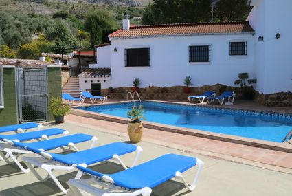 Villa accueillante, rustique "Cortijo San Isidro". Dans l'arrondissement Villanueva del Trabuco, situation tranquille, ensoleillée, dans la verdure, orientée sud. A usage privé: jardin propice à la détente, piscine rectangulaire (01.01.-31.12.). Douche extérieure, meubles de jardin, barbecue. Infrastructures de la Maison: lave-linge. Place de parking. Veuillez noter: voiture recommandée. Bien convenant à 14 adultes. Déchargement et chargement des bagages à la location de vacances. Aéroport 67 m de la maison.Disponibilité