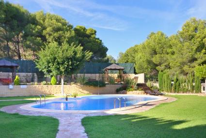 EXTÉRIEUR: Terrain avec pelouse et barbecue portable ainsi que des meubles de terrasse. L'intrigue est complètement fermée. A quelques mètres du bungalow se trouve la piscine commune 13x6 avec escalier romain et pelouse métallique arrondie pour profiter du soleil. Il y a un parking ouvert pour 1-2 voitures en dehors de la parcelle.