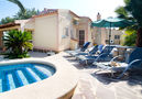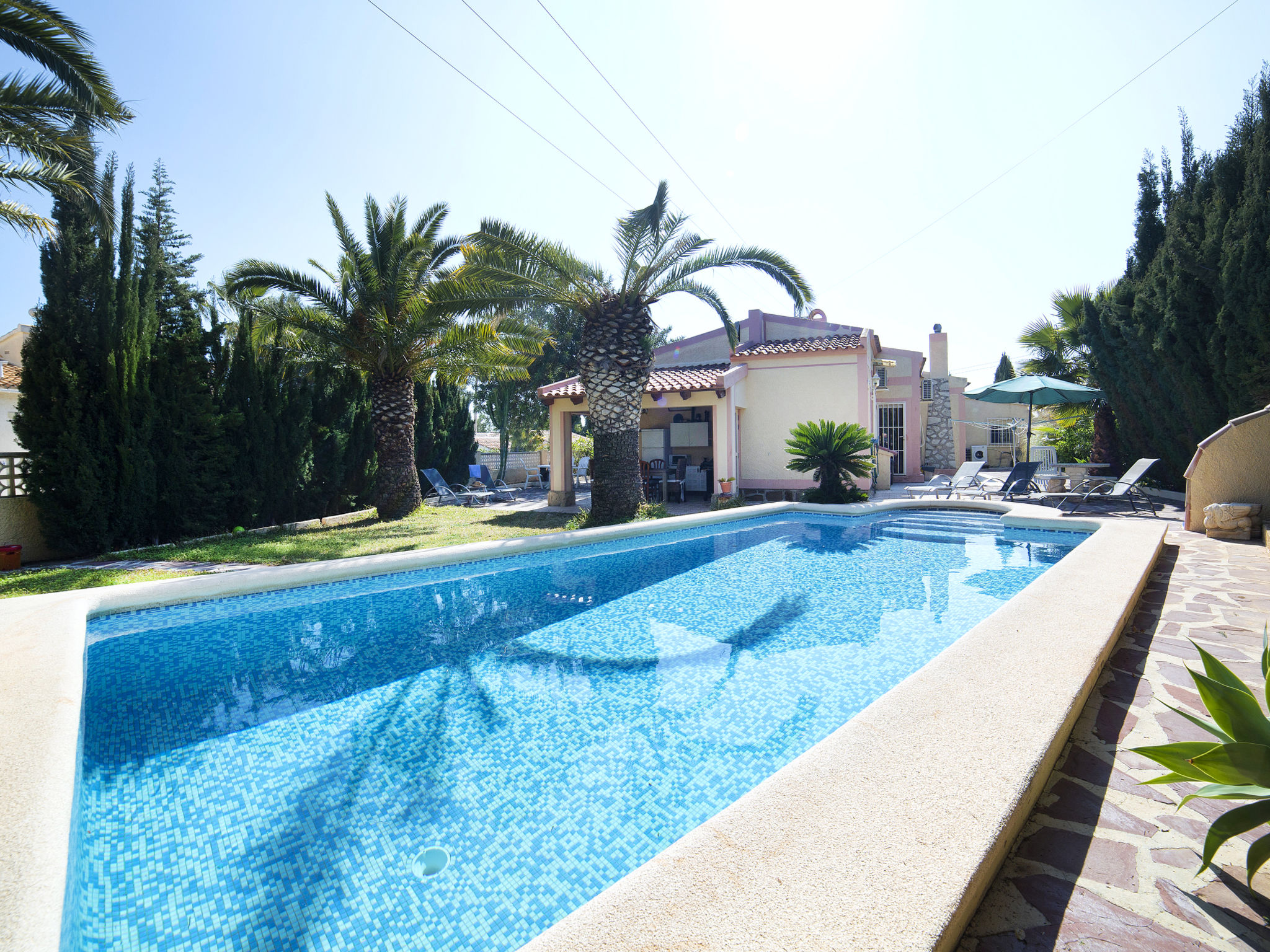 Estación: Grande villa accueillante pour les enfants, confortable "Villa Alegría". En bordure de la localité, à 1.5 km du centre de Calpe, dans l'arrondissement Estación, situation tranquille, ensoleillée quartier résidentiel, à 2.1 km de la plage, dans une impasse. A usage privé: terrain 800 m2 (clôturé), jardin avec pelouse, piscine (8 x 4 m, 01.01.-31.12.) avec marches intérieures. Douche extérieure, jardinet, tonnelle (10 m2), meubles de jardin, barbecue. Infrastructures de la Maison: chauffage central, air-conditionné, lave-linge, possibilité de chauffage uniquement du 01.11. au 30.04.. Place de parking. Magasins 1.1 km, magasin d'alimentation 1.1 km, supermarché 1.1 km, restaurant 200 m, bar 300 m, café 200 m, centre à 16 minutes à pieds, arrêt du bus, gare ferroviaire 200 m, plage de sable "Playa d'Arenal" 2.1 km, crique pour baignade 1.7 km. Port plaisance 4.4 km, marina 4.4 km, ecole de surf 4.4 km, ecole de voile 4.4 km, chemins de randonnées pédestres depuis la maison 300 m. Attractions à proximité: Peñon d'Ifach, Morro de Toix. Veuillez noter: adapté(e) aux familles, indiqué pour séniors. Groupes de jeunes sur demande seulement.Disponibilité