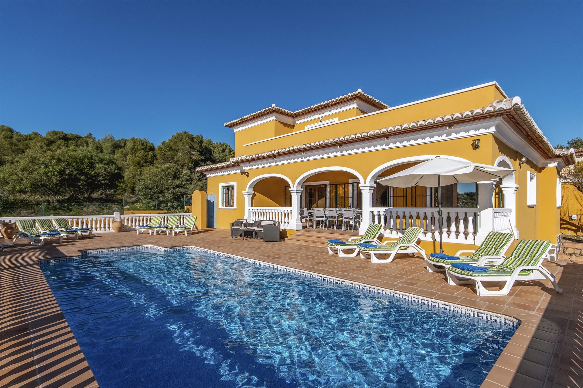 Grande villa confortable avec piscine privée à Javea, Costa Blanca, Espagne pour 10 personnes. La maison de vacances est située dans une région balnéaire et résidentielle.