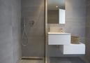 - salle de bain avec seul lavabo, douche, toilette et sèche-cheveux