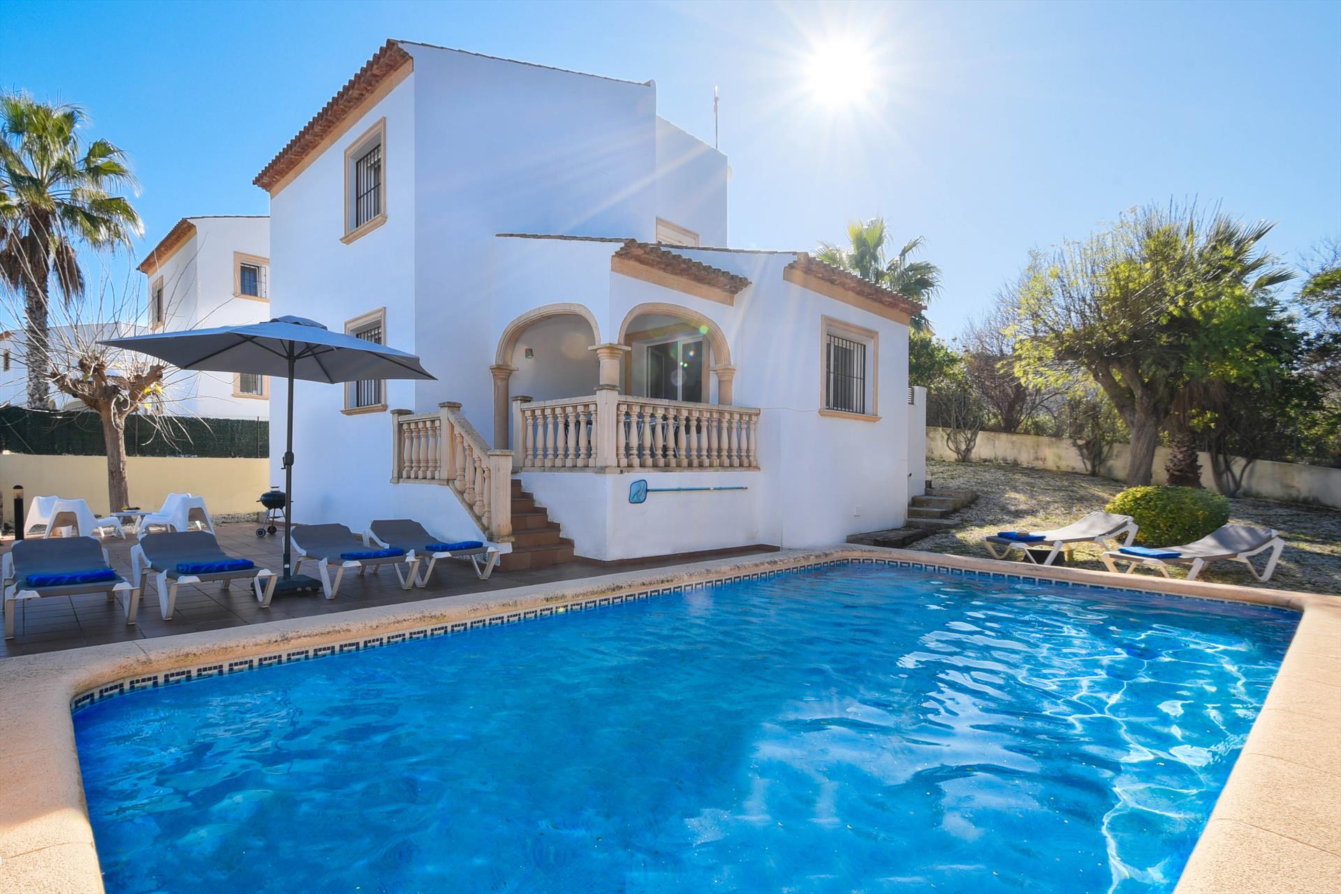 Villa classique et charmante à Javea, Costa Blanca, Espagne avec piscine privée pour 6 personnes. La maison de vacances est située dans une région balnéaire, résidentielle et montagneuse et à 3 km de la plage de La Granadella, Javea.
