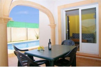 Location dans la region de Jávea, pour 4 personnes. Cette jolie villa de construction récente est située dans une des zones les plus calmes, entourée de pins, parfait pour faire de longues promenades. Cette belle villa est composée de 2 chambres, 2 salles de bain, salle à manger, salon avec televisión, cuisine complètement équipée avec plaque, four, micro-ondes, réfrigérateur, grille-pain, cafetière, lave-vaisselle et lave-linge. C'est une villa trés confortable, décorée avec goût possèdant un bon mobilier et la climatisation. A l'exterieur se trouve la terrasse couverte depuis laquelle vous accèdez à une piscine privée et un beau petit jardin très agréable avec son mobilier, barbecue portable, et parasol. A seulement 2km, vous trouverez la plage de la Granadella et son paysage excpetionnel. A 5km vous avez la plage de l'Arenal qui en plus d'être une superbe plage de sable aux eaux cristalines et peu profondes est un lieu de commerces et de loisirs offrant tous types de boutiques, bars et restaurants, ceci de jour comme de nuit. Pavillon bleu depuis les onze dernières années consécutives. Le village de Javea, à 7km, est connu pour son charmant centre historique, ses ruelles étroites, son musée et le marché couvert de Abastos en plein centre du village situé juste en face de la monumentale Eglise fortifiée de style gothique.