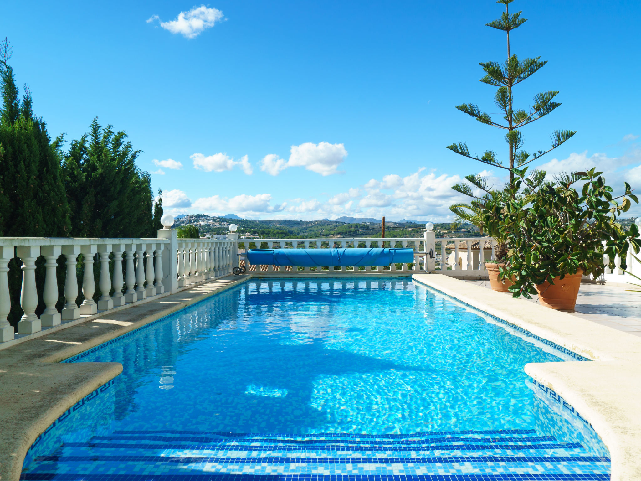 Maison confortable "Helen", de 2 étages. À 2.8 km du centre de Moraira, situation tranquille, ensoleillée quartier résidentiel, à 2.8 km de la mer, à 3 km de la plage. A usage privé: terrain 1'100 m2, grand, beau jardin entretenu, plantes et fleurs, piscine rectangulaire (8 x 4 m, 01.01.-31.12.) avec marches intérieures. WC dans le pool house, douche extérieure, terrasse, meubles de jardin, barbecue, espace barbecue. Infrastructures de la Maison: air-conditionné. Place de parking sur le terrain. Magasins, supermarché, restaurant, bar 850 m, arrêt du bus 1 km, plage de sable "Playa L'Ampolla" 3 km, centre de plongée 3 km. Veuillez noter: voiture recommandée. Adapté(e) aux familles, indiqué pour séniors.Disponibilité