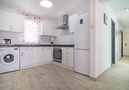 - cuisine américaine avec cuisinière électrique, four électrique, four à micro-ondes, refrigérateur, congélateur, cafetière électrique, bouilloire et grille-pain