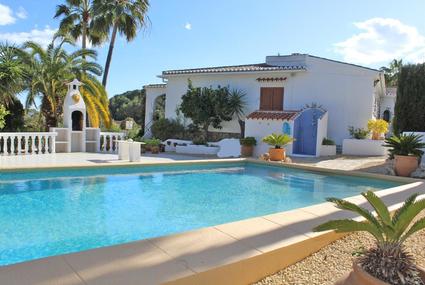 Belle villa classique à Moraira, sur la Costa Blanca, Espagne avec piscine privée pour 6 personnes. La villa est située dans une région collineuse et résidentielle et à 2 km de la plage de Cala Baladrar.