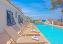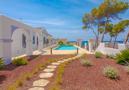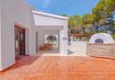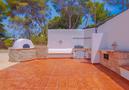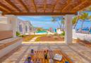 Devant la porte de la villa il y a un joli porche, et à l'arrière vous pouvez profiter d'une terrasse ombragée et d'une grande table pour de nombreux convives, d'un coin cuisine d'été au gaz, avec un four mauresque, et d'un coin banc pour organiser des dîners et des repas fantastiques à l'extérieur. À gauche de la terrasse arrière se trouve la pergola en bois et fonctionne avec un espace détente avec des canapés où les nuits seront un vrai délice. Un jardin avec des plantes méditerranéennes et la belle piscine avec vue sur la mer et un hamac pour plusieurs personnes.