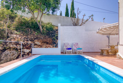 Oliva: Belle, grande maison confortable "Paraiso". À 3 km du centre d'Oliva, à 24 km du centre de Denia, situation surélevée sur un versant, à 5.5 km de la mer. A usage privé: beau jardin sur plusieurs niveaux plantes et arbres, piscine rectangulaire (6 x 3 m, profondeur 110 - 160 cm, disponibilité saisonnière: 01.Jan. - 31.Dec.) avec marches intérieures. Douche extérieure, terrasse, barbecue. Infrastructures de la Maison: Connexion WIFI. Sentier en escalier (16 marches) jusqu'à la maison. Place de parking sur le terrain. Supermarché 3 km, restaurant 1 km, arrêt du bus 3 km, plage de sable 5.5 km. Terrain de golf (18 trous) 6 km, tennis 5 km. Le propriétaire n'accepte pas les groupes de jeunes. Certaines parties de la maison sont fermées et inoccupées.Disponibilité