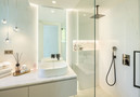 Il y a également trois salles de bains, dont une salle de bains avec baignoire, une salle de bains avec douche et des toilettes. Un sèche-cheveux est également fourni pour le confort des hôtes.