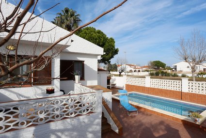 Urb. Riumar à 8 km de Deltebre: Maison mitoyenne accueillante, confortable "3 Camins". En-dehors de la localité, à 200 m de la mer, à 200 m de la plage. A usage privé: terrain 100 m2 (clôturé), piscine rectangulaire (01.01.-31.12.). Jardinet (10 m2), meubles de jardin, barbecue, parking public possible dans la rue. Magasins 700 m, restaurant, bar 500 m. Veuillez noter: voiture recommandée. Groupes de jeunes sur demande seulement.
