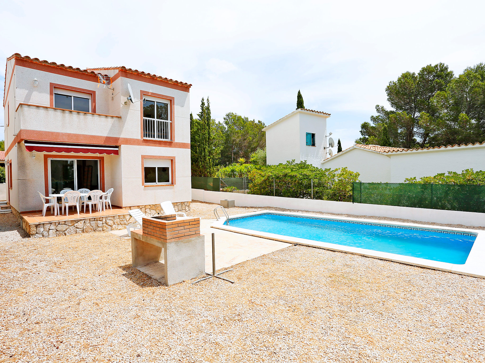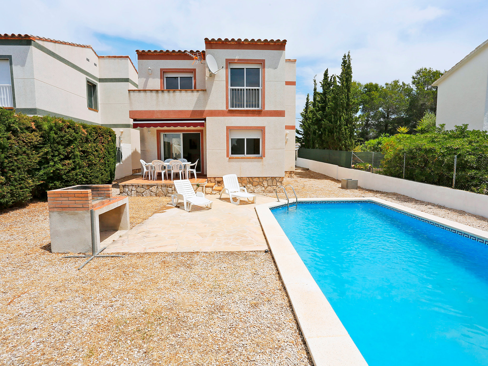Las Tres Calas à 3 km de l'Ametlla: Maison mitoyenne accueillante, confortable "Santa Marta IV", de 2 étages. Situation tranquille, ensoleillée, à 3 km de la mer, à 3 km de la plage. A usage privé: terrain à l'état naturel (clôturé), piscine (8 x 4 m, profondeur 140 - 200 cm, disponibilité saisonnière: 01.Avr. - 30.Nov.). Terrasse, meubles de jardin, barbecue, entretien de la piscine par le propriétaire/jardinier. Magasins 1.5 km, supermarché 1.5 km, restaurant 1.5 km, arrêt de bus 1.1 km, gare ferroviaire "ametlla de mar" 5.4 km. Attractions à proximité: Parque Portaventura 48 km, parque Aquopolis 51 km, parque natura del Delta del Ebro 35 km, Tarragona 57 km, Reus 48 km, Barcelona 153 km. Groupes de jeunes sur demande seulement.Disponibilité