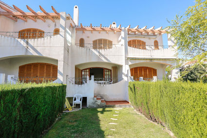 Hospitalet: Maison mitoyenne "Residencial el Arenal", de 2 étages. En bordure de la localité, à 2 km du centre de Hospitalet, situation tranquille, ensoleillée, à 100 m de la mer, à 100 m de la plage, accès direct à la plage. En commun: terrain, piscine (13 x 6 m, profondeur 80 - 260 cm, disponibilité saisonnière: 01.Jun.-30.Sep. horaires d'ouverture de la piscine: 10:00-21:00). Entretien de la piscine par le propriétaire/jardinier. A usage privé: jardin (clôturé) avec pelouse 40 m2. Terrasse, meubles de jardin. Sentier en escalier (5 marches) jusqu'à la maison. Garage individuel. Centre commercial 2 km, gare ferroviaire "Hospitalet" 1.5 km, plage de sable 100 m. Attractions à proximité: Parque Portaventura 28 km, parque acuático Aquopolis 31 km, parque Natural del Delta del Ebro 53 km, Tarragona 37 km, Reus 30 km, Barcelona 132 km. Veuillez noter: voiture recommandée. Groupes de jeunes sur demande seulement.Disponibilité