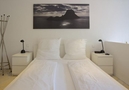 1 chambre double avec lit double de 180 x 200 et salle de bain avec douche en suite + réfrigérateur et cafetière.