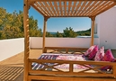 1 chambre double avec un lit double de 180 x 200 et TV. Accès à la grande terrasse avec lit bali et de belles vues.