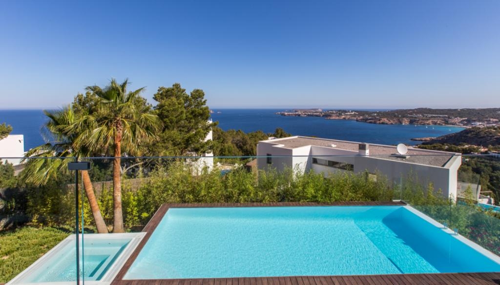 Spectaculaire villa moderne et minimaliste de 450 m2 habitables, située sur une colline près de Cala Moli avec une magnifique vue sur la mer, les îles de S'Esparta et Bledas, avec de superbes couchers du soleil.Disponibilité
