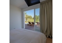 3 chambres doubles, chacune avec lit de 150 cm, salle de bains en suite avec douche et dressing, et accès à la terrasse.