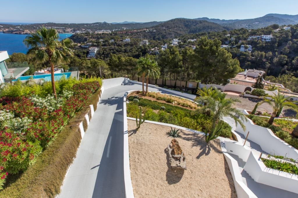 Spectaculaire villa moderne et minimaliste de 450 m2 habitables, située sur une colline près de Cala Moli avec une magnifique vue sur la mer, les îles de S'Esparta et Bledas, avec de superbes couchers du soleil.