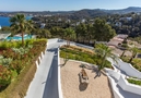 Terrasse très spacieuse avec chaises longues et parasols.