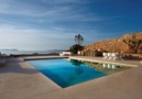 Maison très luxueuse située en première ligne de mer, dans l´urbanisation de Caló den real, entre les plages de Cala Vadella et Cala Moli. Supermarché à 1 Km avec service de livraison gratuite à domicile. San Jose à 7 Km et Ibiza ville à 20 Km. Sur un terrain de 2.000 M2. entièrement clôturé par des murs de pierre, très belle maison articulée autour d´un patio central avec grande piscine donnant directement sur la mer. Superbe vue sur la côte Ouest et les îles de S´Esparta et de Bledas. Capacité: 10 personnes. Maison de plein pied avec plusieurs bâtiments: - Partie principale: Salon salle à manger avec cheminée, TV parabolique chaînes françaises, musique, vidéo et téléphone. Cuisine américaine très bien équipée avec tout type d´électroménager comme machines à laver le linge et la vaisselle, 2 fours, grande cuisinière Smeg .. et grande réserve. Toilette d’invités. Grand patio avec salle à manger extérieure. Entre ce patio et la terrasse piscine, se trouvent 4 chambres doubles, et 4 salles de bain distribuées de la façon suivante: 2 chambres principales avec lit double donnant sur la terrasse piscine avec cheminée et vues sur mer. Une d´ elle avec TV parabolique. Chaque chambre a sa salle de bain complète en suite. 2 chambres doubles avec lits individuels donnant sur le patio, chacune avec sa salle de douche complète et toilette. - Annexe totalement indépendante: Une immense chambre double avec lit matrimonial de 2 x 2 et sa salle de douche complète. Terrasse piscine: Directement en front de mer, belle piscine de 5 x 10. Bar entièrement équipé. Salon et salle à manger sous porche couvert Internet WIFI Coffre-fort dans chaque chambre. Portail électrique. Chauffe-serviettes dans toutes les salles de bain. Eau avec système d\´épuration. Air conditionné dans les chambres. Finitions intérieures en micro-ciment et extérieures en mortex. Décoration de grand luxe et de très bon goût. Peut être dangereuse pour enfants de bas âge vu la proximité de la falaise.