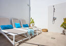 Aménagement agréable: séjour/salle à manger avec TV (satellite) et Télévision numérique. Sortie sur le jardinet. 1 chambre avec 1 grand-lit (200 cm), douche/WC, radiateur électrique et ventilateur. 1 chambre avec 2 lits, radiateur électrique et ventilateur. Cuisine ouverte (four, lave-vaisselle, 3 plaques vitrocéramiques, grille-pain, bouilloire électrique, congélateur, cafetière électrique). Douche/WC. Terrasse partiellement couverte. Meubles de terrasse, chaises longues (3). ETV7764