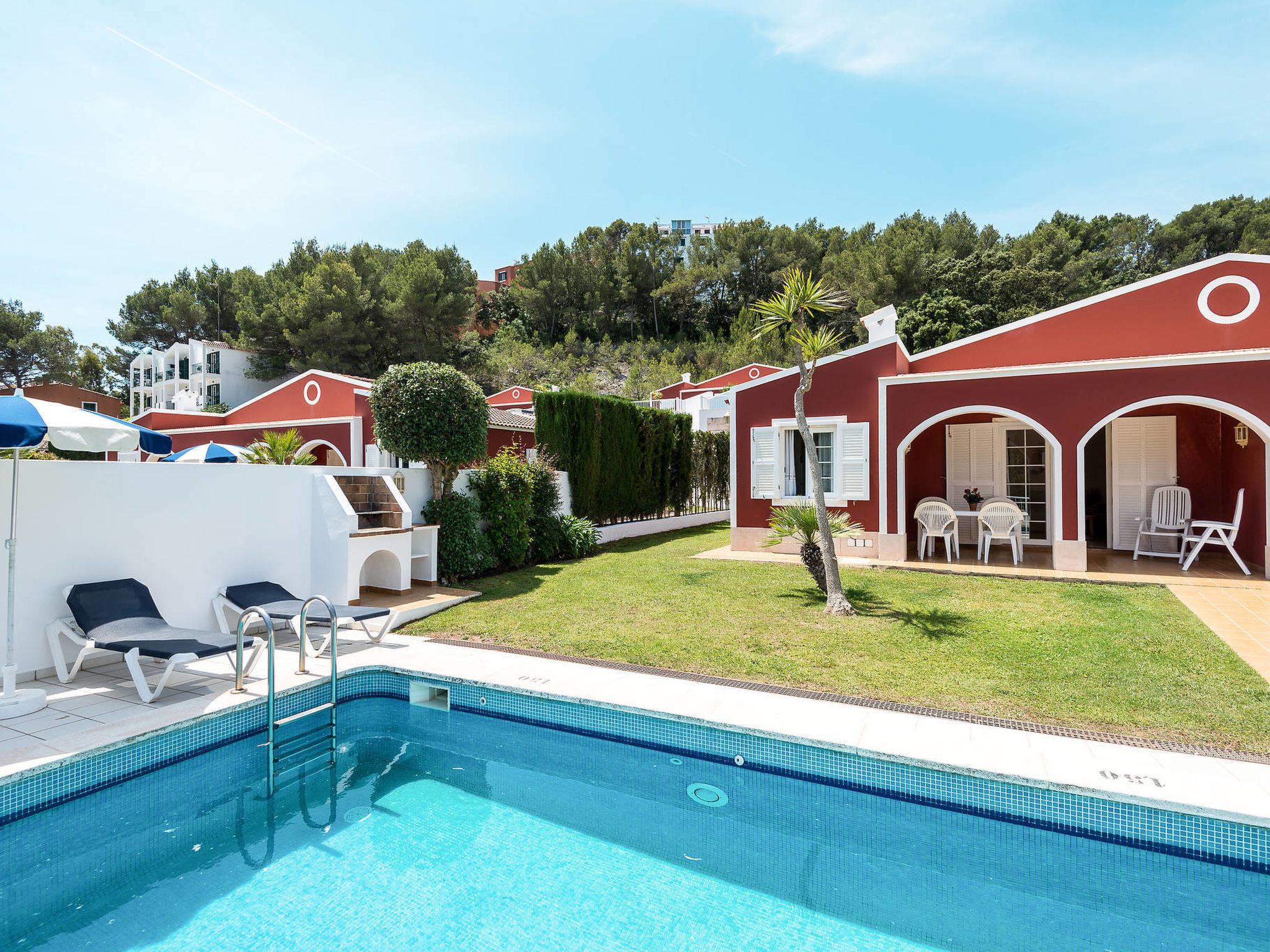 Maison jumelée "Villas Galdana Palms". À 300 m du centre de Cala Galdana, à 8 km du centre de Ferreries, à 26 km du centre de Ciutadella, à 800 m de la mer, dans une impasse. A usage privé: terrain 200 m2, jardin pelouse, piscine (6 x 4 m, 01.05.-31.10.). Terrasse, meubles de jardin. Sentier en escalier (33 marches) jusqu'à la maison. Parking public possible dans la rue. Magasins 300 m, supermarché 500 m, plage de sable 800 m. Veuillez noter: voiture recommandée.